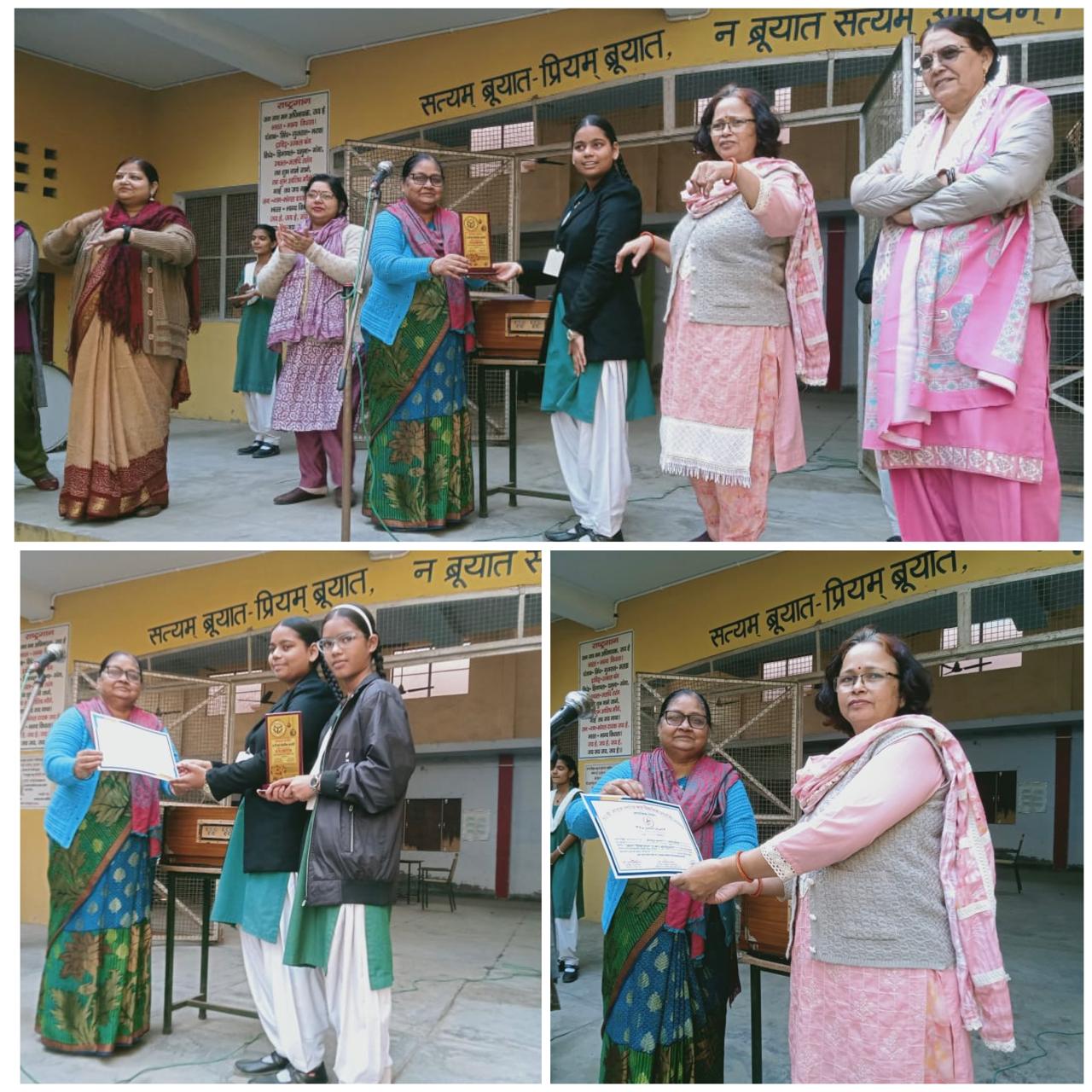 छात्रा कुमारी आरोही व गाइड टीचर श्रीमती नीलम सागर को प्रधानाचार्या द्वारा सम्मानित किया गया।